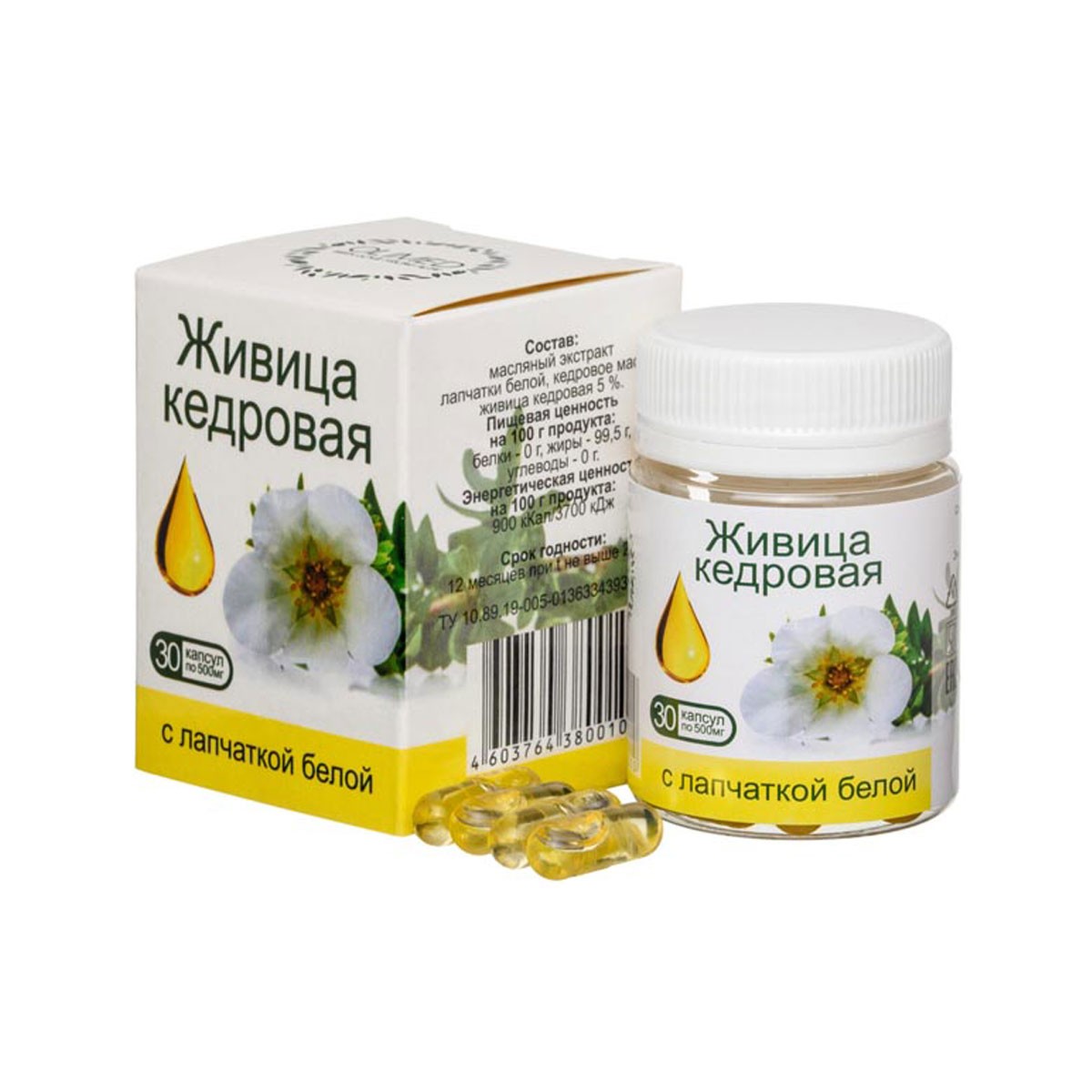 Живица кедровая 5% с лапчаткой, 30 капсул по 500 мг