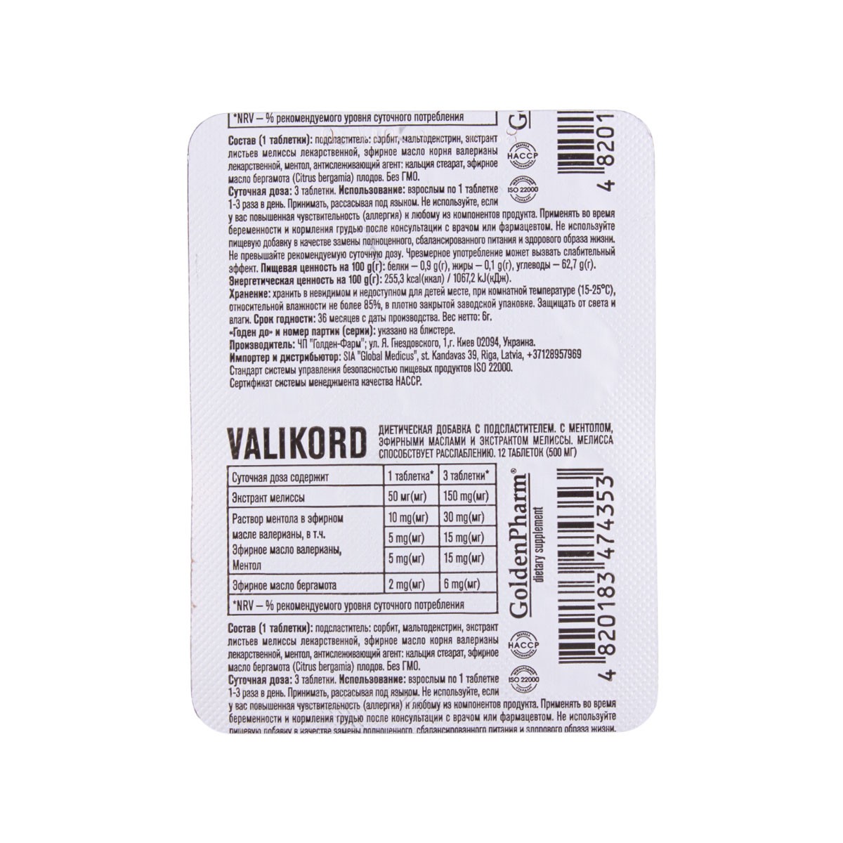 Валикорд табл.N12