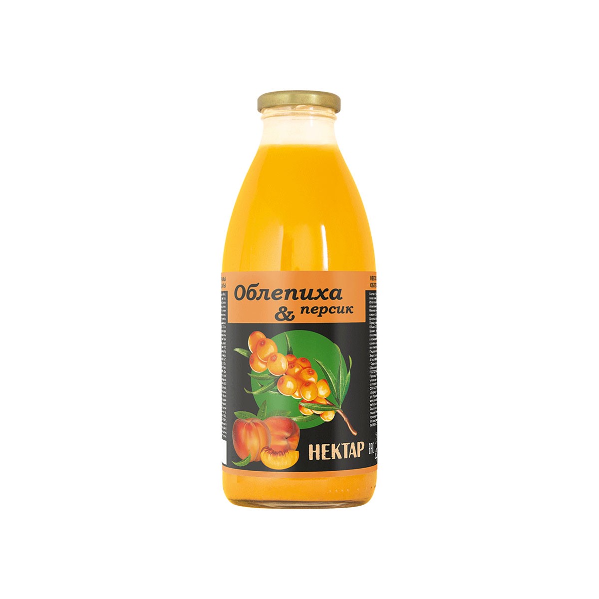 Состав: облепиховый сок, персиковое пюре, сахар, вода. Изготовлен из натурального облепихового сока и персикового пюре. Минимальная объемная доля сока и пюре не менее 28%.