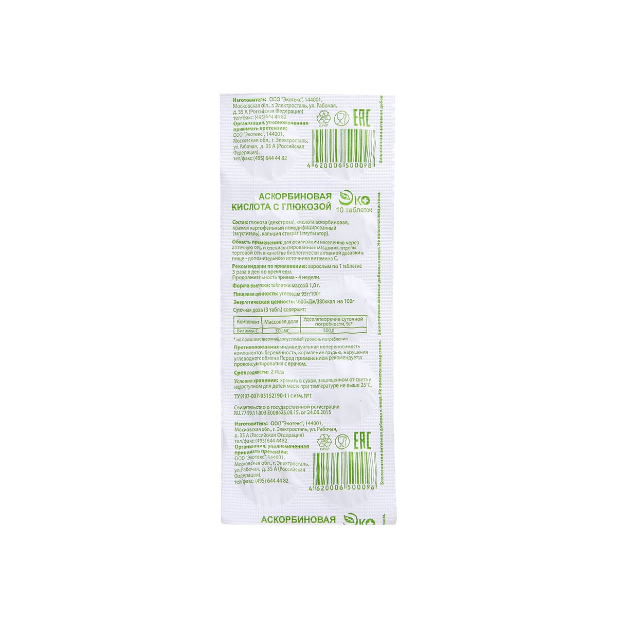 Аскорбиновая кислота 300мг с глюкозой табл. N10
