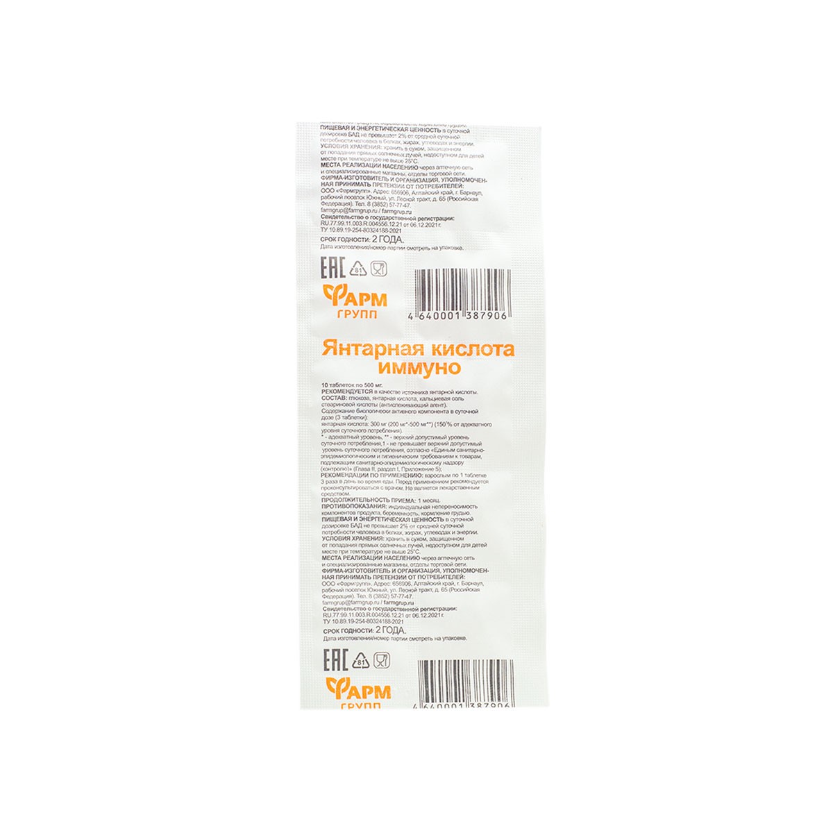 Янтарная кислота. Иммуно, табл. 0,5 г №10